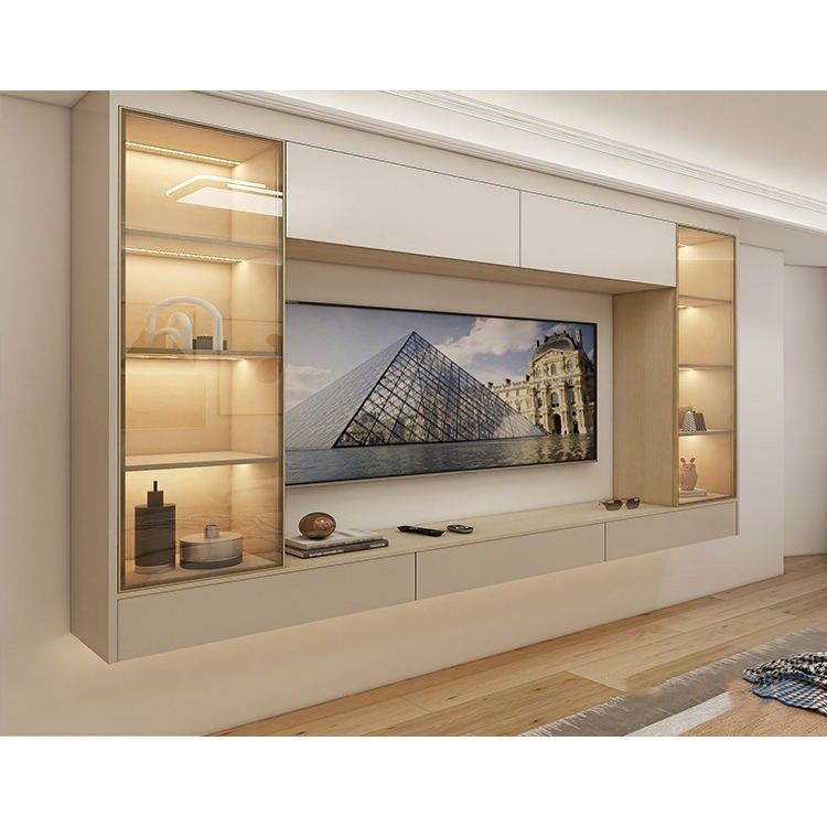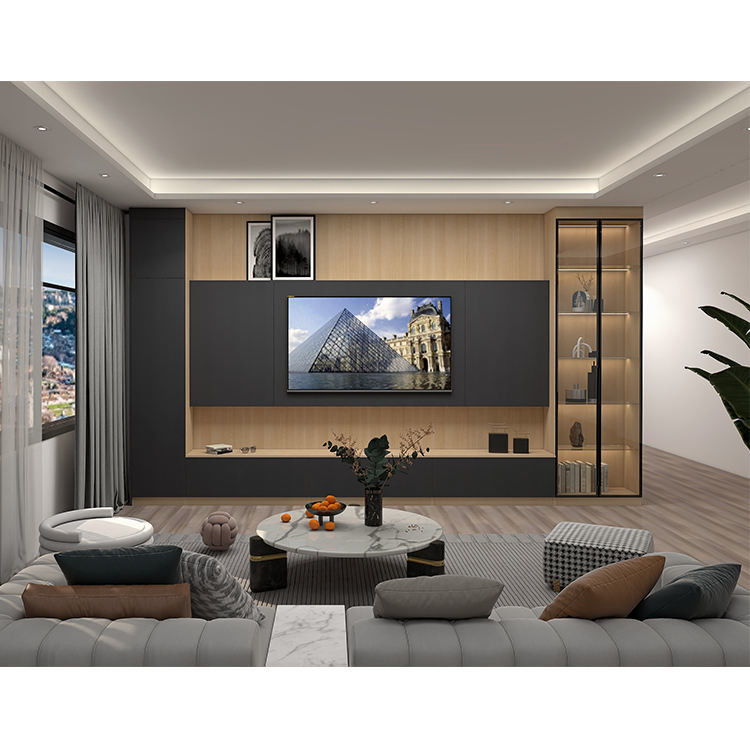 আধুনিক হোম হোটেল ভাসমান কাঠ টিভি ক্যাবিনেট প্যানেল আসবাবপত্র ডিজাইন লিভিং রুম ঝুলন্ত স্ক্রীন টিভি ক্যাবিনেট