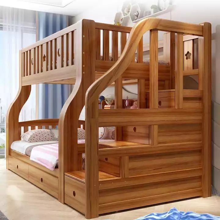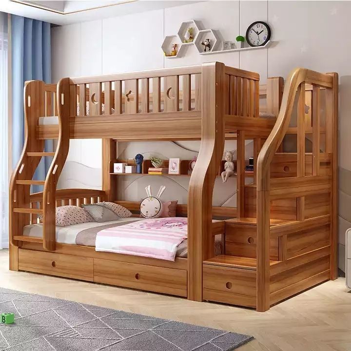 সুন্দর শিশুদের কাঠের ডাবল বাঙ্কের বিছানা