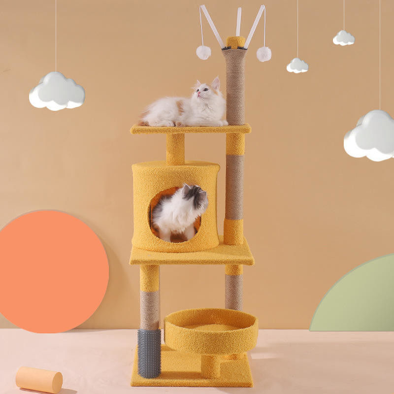 স্ক্র্যাপার পোস্ট: ক্লাইম্বিং টাওয়ার গাছে স্ক্র্যাপার পোস্ট দিয়ে সজ্জিত করা হয়, সাধারণত প্রাকৃতিক দড়ি বা কাপড়ে মোড়ানো, বিড়ালদের তাদের PAWS ঘষতে একটি আদর্শ জায়গা প্রদান করে, আসবাবপত্র রক্ষা করার সময় তাদের নখর নিচে পরতে সাহায্য করে।