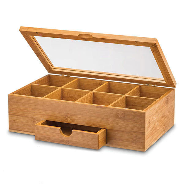 FSC BSCI কাস্টম প্যাকিং কাঠের চা ব্যাগ হোল্ডার গ্লাস টপ উড ডিসপ্লে বক্স 0