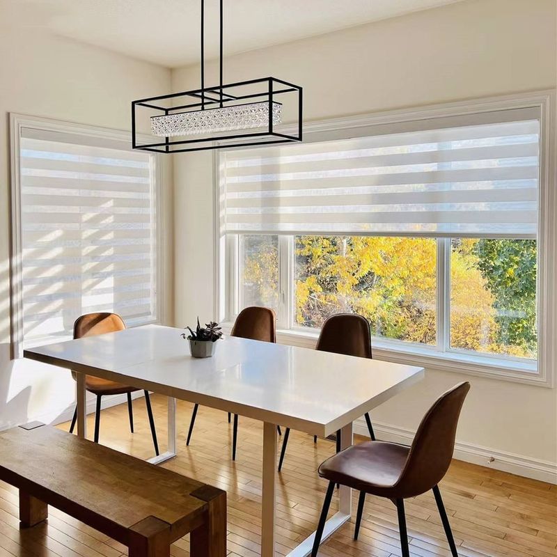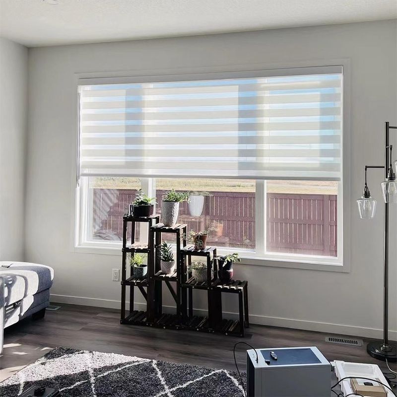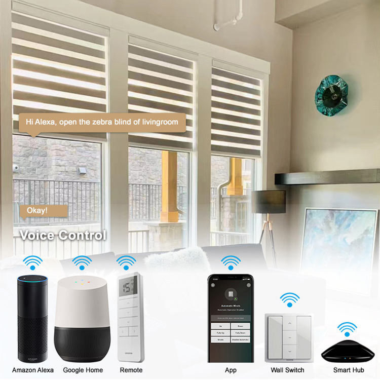 কাস্টম সাইজ ব্ল্যাকআউট কর্ডলেস মোটরযুক্ত উইন্ডো কার্টেন শেড ডাবল লেয়ার স্মার্ট জেব্রা ব্লাইন্ডস
