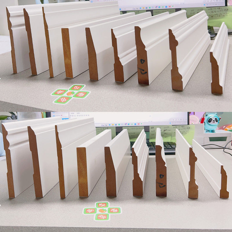 সাদা প্রাইমার: সাধারণ স্কার্টিং বোর্ডের বিপরীতে, কাঠের স্কার্টিং সাদা প্রাইমার বোর্ডগুলি উত্পাদনের সময় সাদা প্রাইমারের সাথে প্রি-লেপযুক্ত থাকে, তাদের পৃষ্ঠকে মসৃণ এবং অভিন্ন করে তোলে, উজ্জ্বল এবং বিশুদ্ধ রঙের সাথে, আলংকারিক প্রভাবকে বাড়িয়ে তোলে।